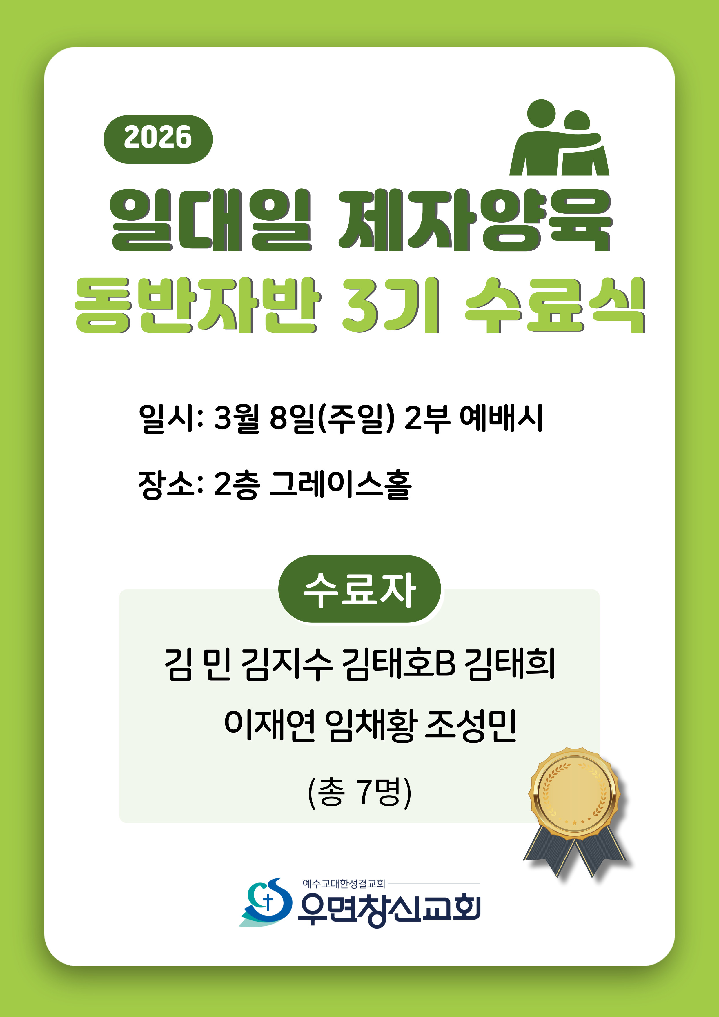 2026 일대일 제자양육 동반자반 3기 수료식
